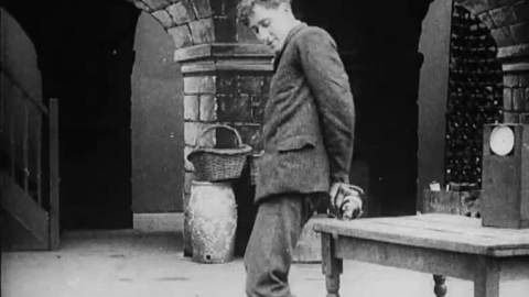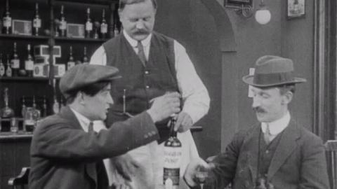 Gregarious tramp Winky tries to get one over on the local innkeeper in this daft silent comic short.