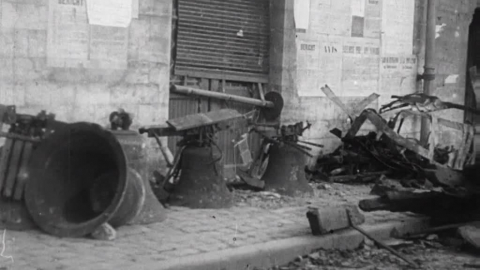 Newsreel cameras capture huge crowds thronging the Paris streets for the funeral of an assassinated newspaper editor.