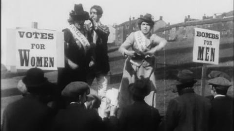 The campaign for women's suffrage steps up as Emmeline Pankhurst is arrested at the gates of Buckingham Palace.