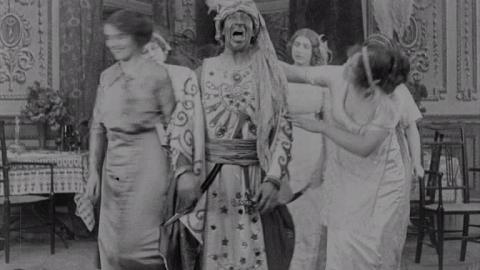 Early Vivaphone film capturing a jolly music hall routine about a maharajah's visit to London, made to be screened with a synchronised sound disc.