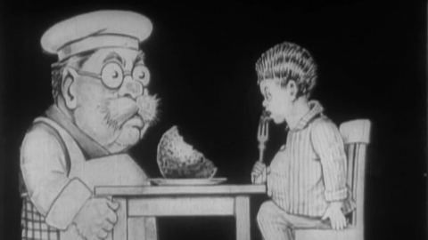 An edible bomb is cooked by the Kaiser in this fun WWI cartoon, which mixes propaganda with fantasy as a boy's dreams turn into nightmares.