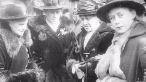 Sprucely dressed women set themselves to lugging tarpaulin and unloading sacks in this WWI newsreel