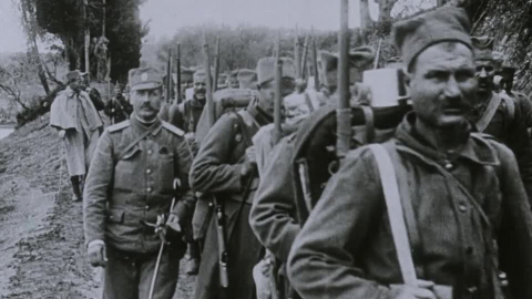 Troops overcome difficult terrain in this news film of the little-known WWI campaign in Macedonia