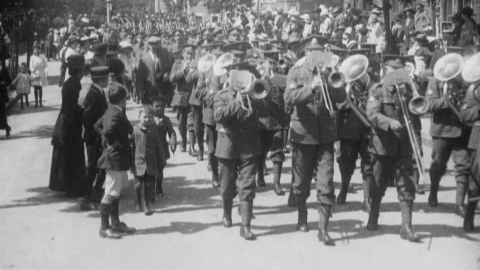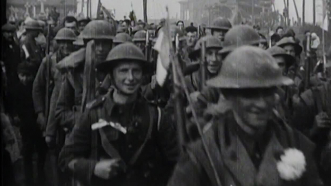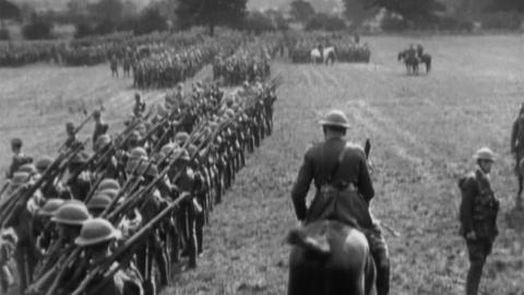 American troops march through London and salute King George V in this late-WWI newsreel item