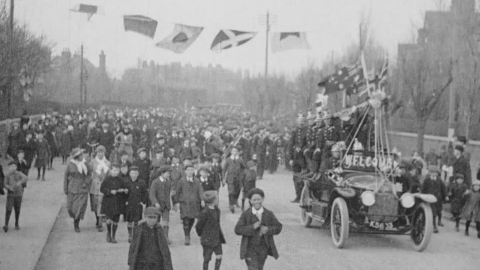 Bashful British soldiers are mobbed by French citizens after Lille is freed from the Germans in WWI.