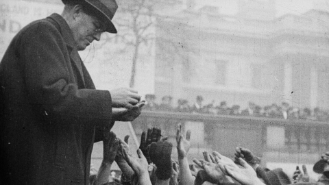 Newsreel footage of the great food saver Arthur Yapp speaking in Trafalgar Square during WW1.