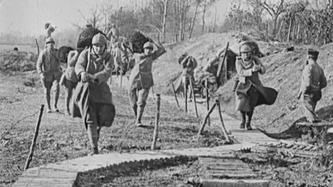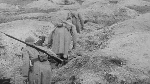 You can virtually hear the explosions and smell the smoke in this rare close-up of a WWI battlefield.