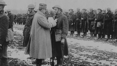 Proud servicemen accept awards for valour in a morale boosting late-war newsreel