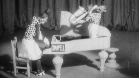 Black music hall stars Scott and Whaley perform stereotypical minstrel routines in blackface in this 1937 touring revue.