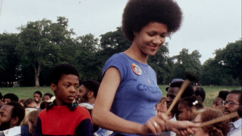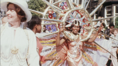 West London echoes to the sound of reggae and steel pans in this kaleidoscopic record of the 1980 Notting Hill Carnival.