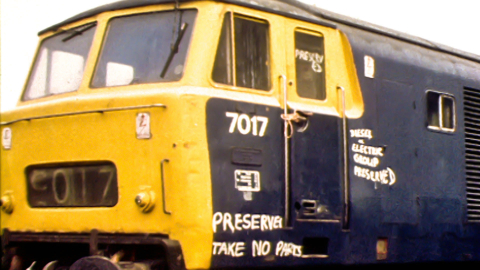 British Rail Class 35 no. 7017 Diesel Engine and the locomotive Vulcan await their fate at Taunton Train Yard