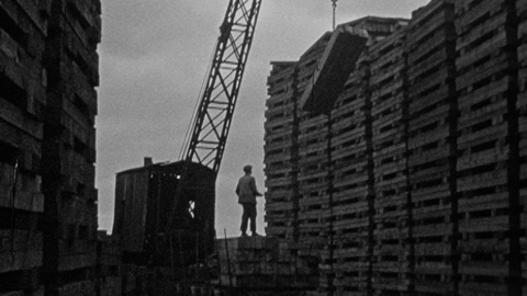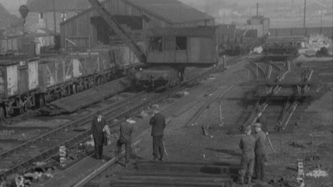 Dockers move timber, a signalman moves points: Chris Jenkins, amateur film-maker and proprietor of a Cardiff hair salon, tries his hand at filming an industrial landscape.