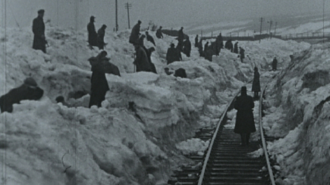 Like a scene from Dr Zhivago, this train struggles through spectacular blizzards as gangs of men armed with shovels attempt to clear the 30 foot high snow drifts over the Pennines.