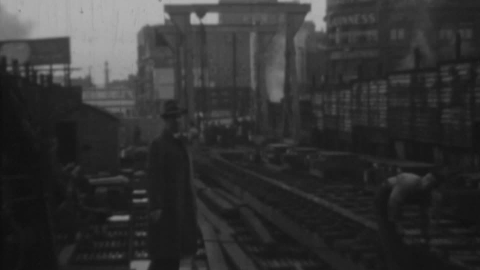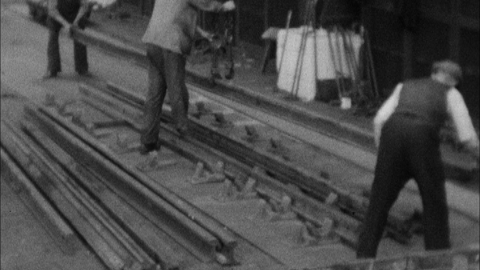 This is a fascinating, and somewhat puzzling, film of railway workers assembling a large section of crossover track, apparently not in situ.