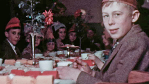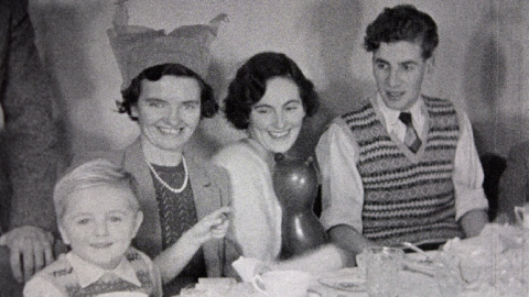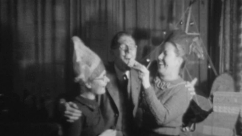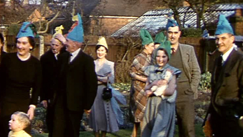 Party hats and finger food, funny faces, and a snowball fight; the Lane-Scrutton families enjoy a Christmas get-together and a giggle in this 1951 home movie.