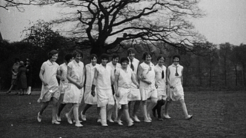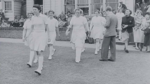 Action from a women's game of cricket in Sunbury, with one of the teams consisting of workers at Lyons Corner Houses.