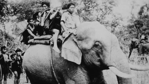 In this newsreel report the Duke rides an elephant as he ventures on safari in Bengal.