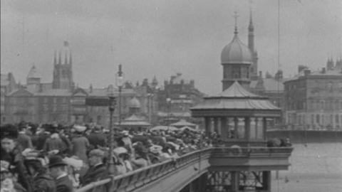 Edwardian holidaymakers throng to the attractions at Lancashire's premier seaside resort.