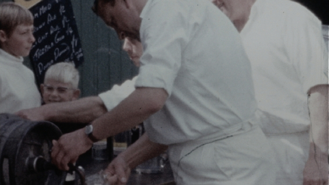 From local league matches in parks or on village greens, to tip and run on the street or in the playground, away from the first-class game cricket is a social occasion with its own distinctive ceremonies: whether its deckchairs on the boundary or wickets chalked on a wall. This collection of mostly amateur films captures the enjoyment of the game at the grass (or concrete, tarmac or sand) roots. Witness the camaraderie of team mates ‘on tour’, a match in period costume and a fancy dress scramble on the beach from the comfort of your own pavilion.