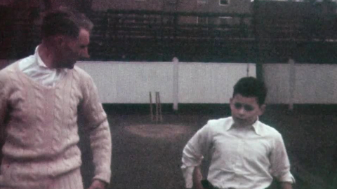 A dream comes true for this schoolboy as he practices in the nets at the Oval, captured in wonderful Kodachrome