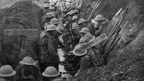 In the surviving opening scenes of this WWI-set feature, young soldiers head to the front and face life in the trenches