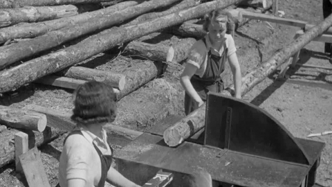 Wartime woodland management: we can do it! Women add their labour to the work of axe and saw.