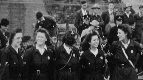 Men and women from Walton, Weybridge and Hersham's Civil Defence organisations are on the march in this local War Bonds fundraiser for War Weapons Week in March 1941.