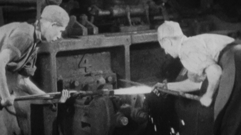 Amongst the white hot metal and the pounding drop hammer the men and women of Butterley Engineering work tirelessly in producing railway wagons for Britain's war effort.