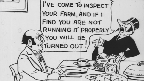 Mr Nosey Parker visits farmer John Barleycorn to tell him how to do his job in this witty Conservative Party campaigning cartoon.