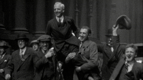 With the nation at the polls, incumbent PM Stanley Baldwin’s election call had not yet backfired when this newsreel summary was released.