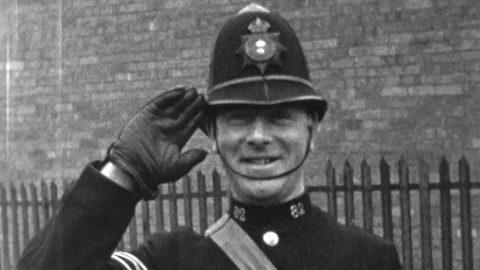 A wonderful, and often comic, peep into police training as the war gets underway; after having their chests measured, they learn how to control traffic and deal with dead bodies.