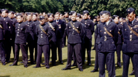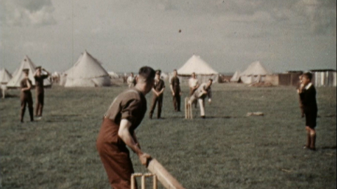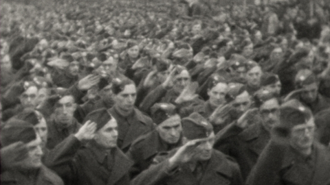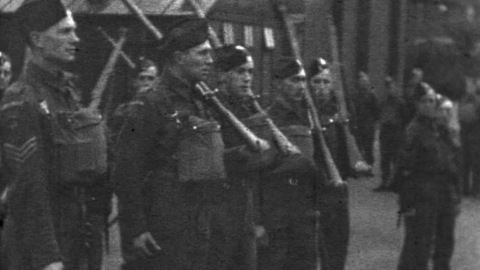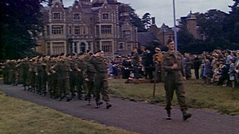A war-time parade of servicemen at Babraham Hall Estate, and Girl Guides at "The Gogs", captured by amateur filmmaker and Cambridge don Trevor Spittle.