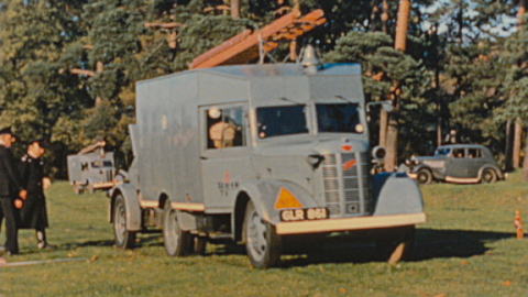 Men of the NFS demonstrate their fire fighting equipment skills before an audience in this splendid colour film from 1942. And the best crews get the best prizes.