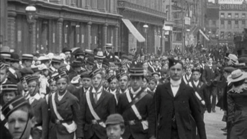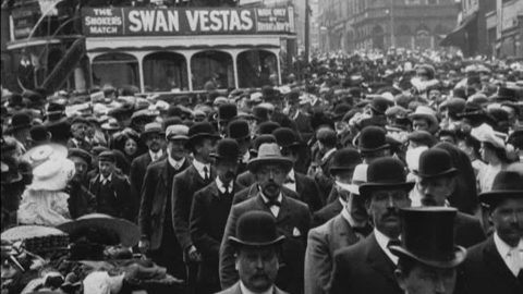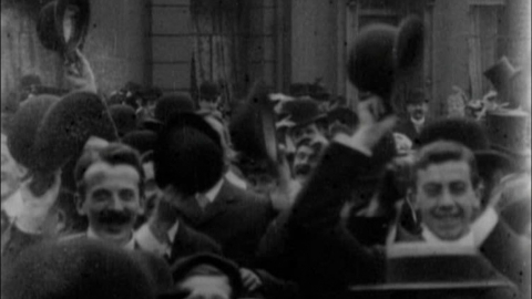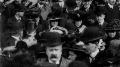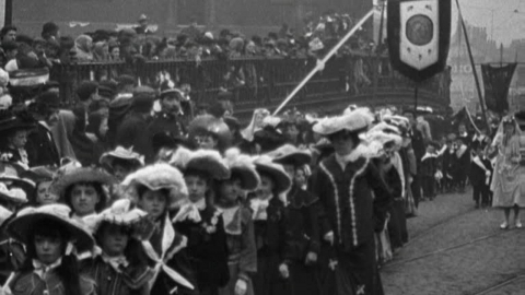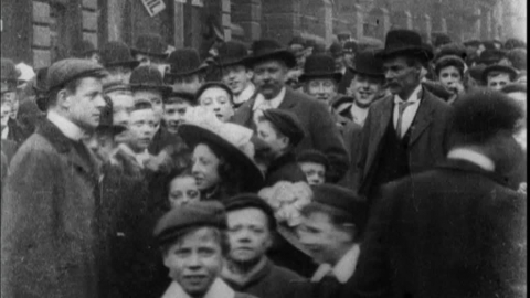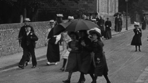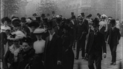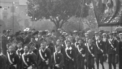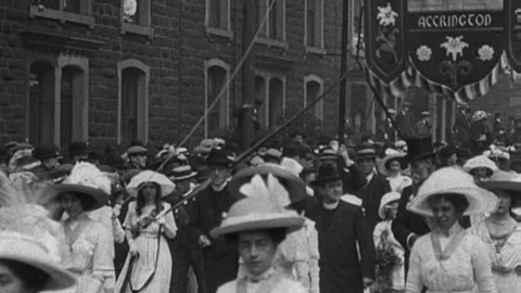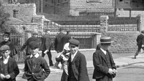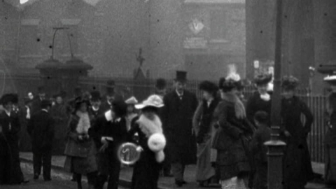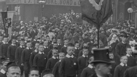 Of a weekday, Mitchell and Kenyon's cameramen might be occupied filming workers leaving factories or schoolchildren parading. On occasional Sundays, they found themselves with a more sombre subject: the faithful leaving places of worship. Mitchell and Kenyon's 'church gate' films mirror their 'factory gate' films, filling the frame with faces - though typically shot from a more respectful distance. Elsewhere, they shot footage of parades or processions with a religious flavour, with several featuring the Christian youth movement the Boys Brigade. The Anglican church was England's most prominent, but Catholicism has a strong presence here, reflecting its strength in M&K's Lancashire backyard and in southern Ireland. Several non-conformist denominations get a look-in too. These films show us another side of the Edwardian age, revealing how integral Christianity still was to public life. Unlike most factories or schools, churches brought the classes together, so these films offer us a vivid cross-section of society at prayer. Digitisation of this collection was funded by The National Lottery.