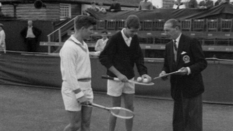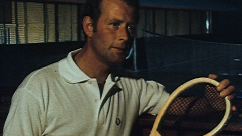 The “voice of wimbledon” Dan Maskell commentates as some of the world's top tennis players show us their moves and tactics on the court.
