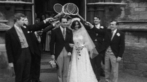 Wimbledon Centre Court action follows a summer wedding filled with flowers, flares and floppy hats in Geoffrey Woodward's film from 1973.