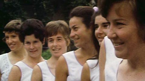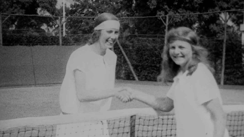 The grown-ups of the Passmore clan let out their inner children as they leap over a tennis net in this early home movie