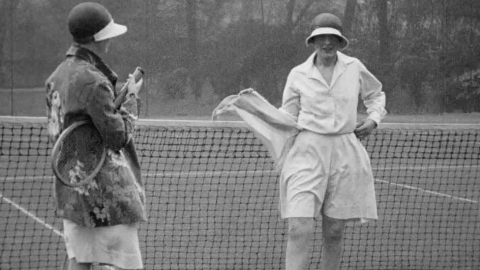 Action from the 1926 Wimbledon Ladies' Singles final between Kitty Godfree and Lilí de Álvarez.