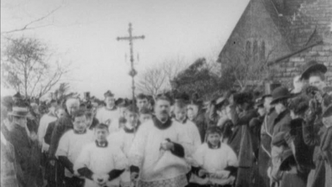 Unusual and sombre footage of much-loved Lancashire priest's funeral.