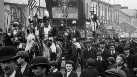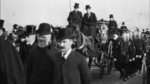 Mitchell and Kenyon's films suggest a company that was most at ease filming ordinary people at work and play. But the Edwardian era, just as today, had its public figures who could draw an audience - and audiences were M&K's business. Edwardian celebrity culture was narrower than today's. The royal family, naturally, were top of the tree. M&K was among the many companies to film Victoria's 1901 funeral, and royals, led by King Edward VII himself, feature often in their films - usually glimpsed briefly in a passing carriage. Behind follow military heroes of the Boer War, politicians and a host of mayors and other local dignitaries. But there are also early signs of the transformation of stardom that would be one of the hallmarks of the 20th century. An increasingly professionalised world of sport was already building a celebrity class of its own. Film and pop stars would follow, and from there the whole panoply of the modern fame game. Digitisation of this collection was funded by The National Lottery.
