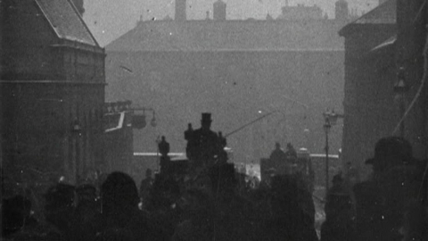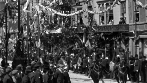 Crowds line the streets of Edwardian Manchester to send off an unidentified military hero.