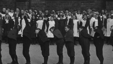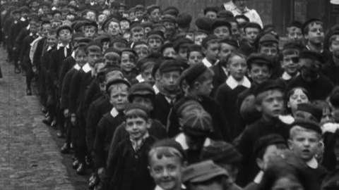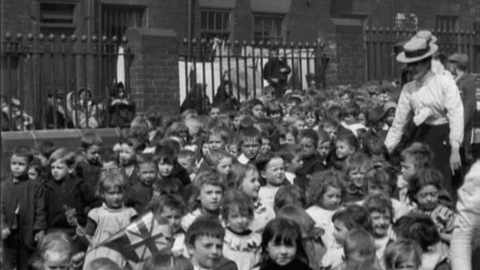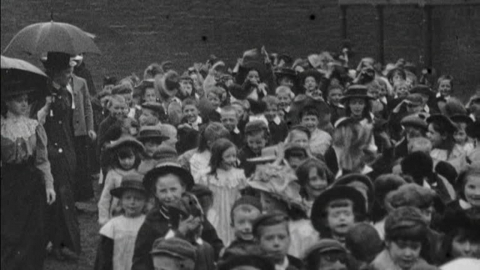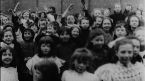 As Mitchell and Kenyon knew well, children can be relied on to brighten a scene. And if those children might not pay up to sixpence to see themselves on the screen, their proud parents surely would. These films of more-or-less formal school parades present a more regimented Edwardian childhood than the one which so often bursts into M&K's other films. Characteristically, the cameramen cram the films with fresh faces, though the watchful teachers keep any high-jinx to a minimum. These films capture a transitional moment in British education, with classroom provision extended in 1902's Education Act. They give glimpses of different educational models: local authority or church-run (Anglican or Catholic), disciplined or (relatively) informal. Viewing these films in the light of history, It's hard not to be reminded that much of this new generation, so full of life and hope, was destined for the trenches of World War I. Digitisation of this collection was funded by The National Lottery.