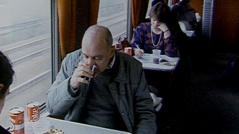 Picturesque views of the East Anglian countryside, often the view from a train chugging along accompany the filmmaker’s wry commentary about the Birdbrook Station closure.