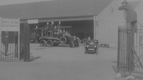 In case of fire, call Mr Morris’ baby fire engine, demonstrated here in the grounds of Cowley works.