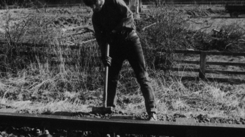 Shy and testy retired signalman Wally Trigg chats to amateur filmmaker and railway enthusiast Chib Thorp, as Micky the Collie happily ambles along the overgrown railway line.