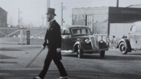 Short extract from a home movie featuring children from King’s College School, Wimbledon, visiting the station and seeing the King’s Wimbledon locomotive.