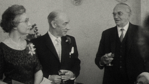 Speeches, toasts and kippahs in this Super 8 home movie of Richard and Lyn Brookes’s wedding, held at Beehive Lane Synagogue in Ilford.