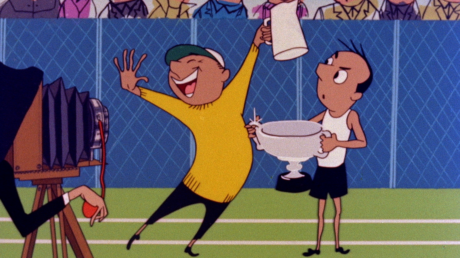 Along with print campaigns, Andrews Liver Salts sponsored radio shows and moved into screen advertising during the boom-time 50s to capitalise on their worldwide market. The brand used a variety of marketing techniques including celebrity endorsement – the 1953 Footballer of the Year Stanley Matthews promoted Andrews on film – and animation. This Little Andy commercial adopts the bold graphics, flattened character designs, compressed space and bright colours pioneered by the Oscar-winning UPA (United Productions of America) studio, whose strikingly modern cartoons caught the public's imagination in the 1950s and were hugely influential in the animation world.