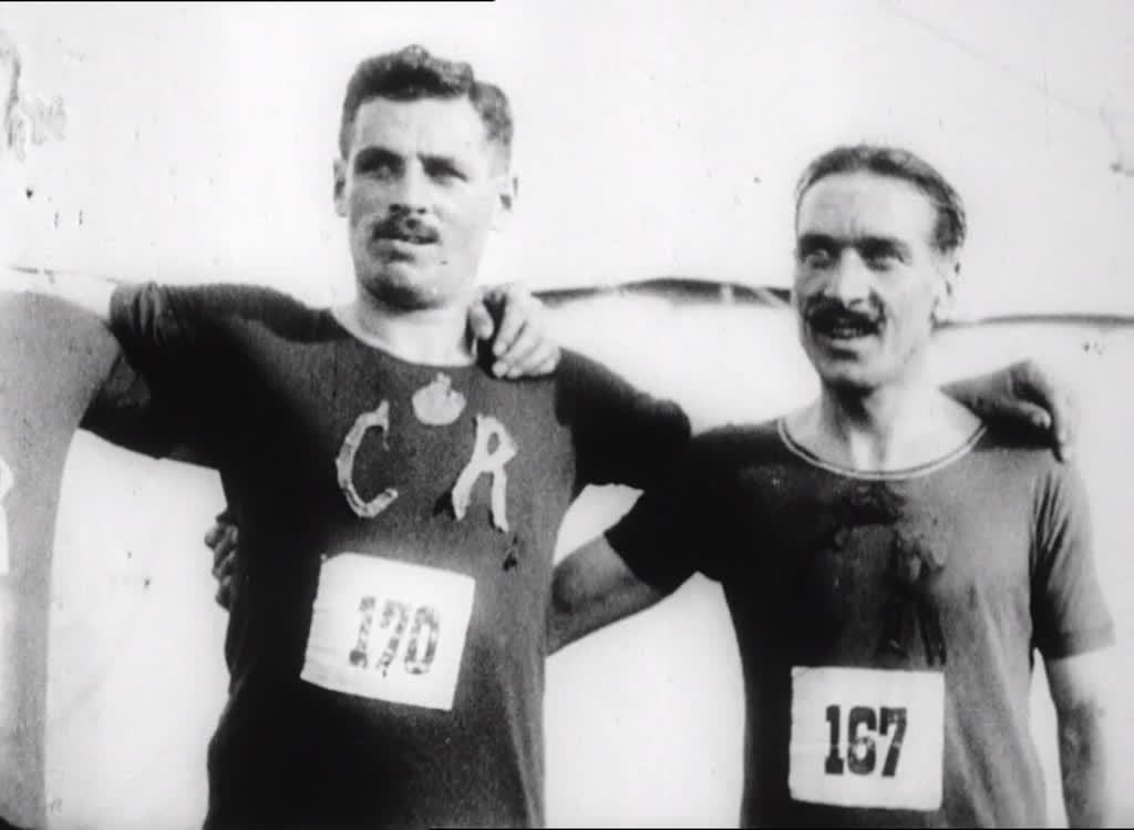 This poignant newsreel item shows hundreds of soldiers competing in the annual Aldershot Cross Country race, months before the outbreak of WWI. The camera keeps pace with the runners, tracking Private Daly as he crosses the finish line. Known as 'the Devil's Own', the Connaught Rangers were an Irish Regiment of the British Army; some 2,500 Rangers would lose their lives in the coming conflict.