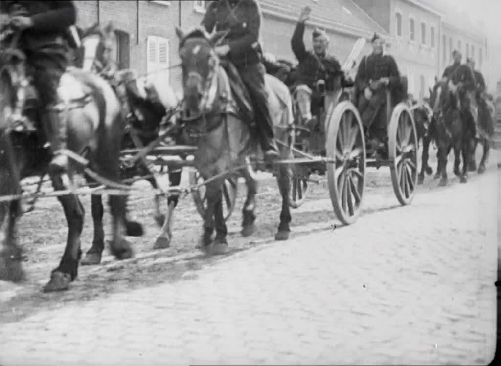 Uplifting images of soldiers on the march were a staple of the newsreels during WWI. These Belgian troops seem in good spirits as they convoy artillery reinforcements through the streets of Alost (also known as Aalst) in East Flanders. But their smiles belie the reality: Belgium was woefully ill-equipped to fend off its powerful neighbour and German forces were already well-entrenched.